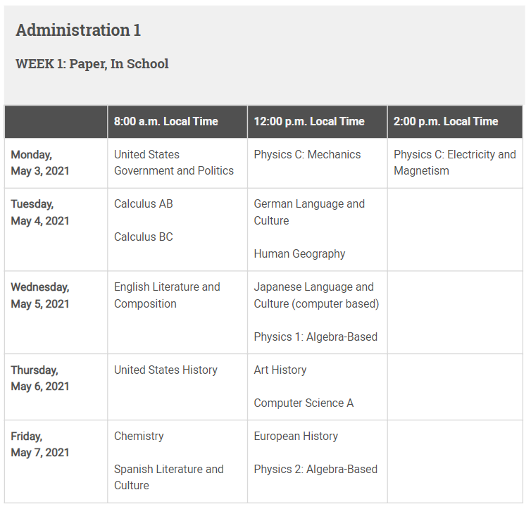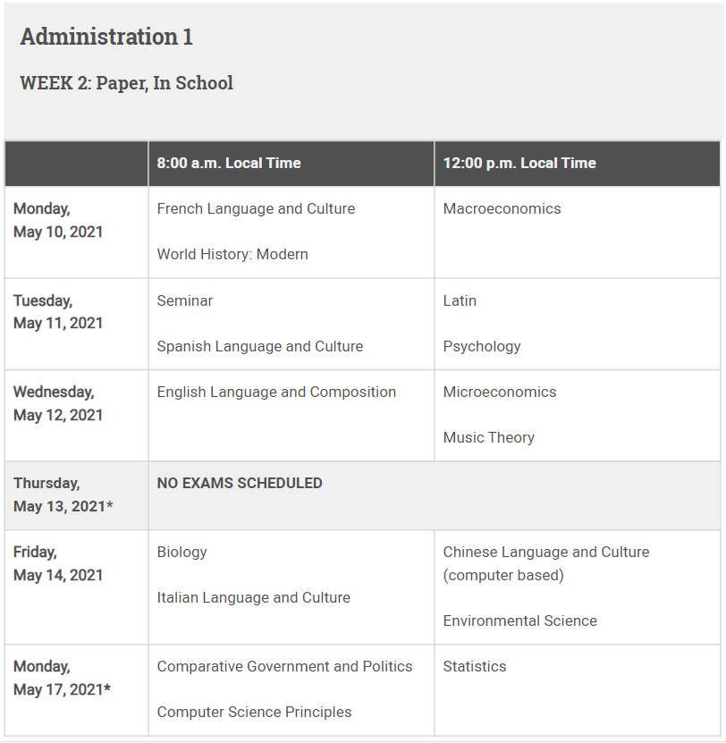 2021 AP EXAM Schedule Hyewon Suh2021년 2월 5일1분 분량2021 올해 Collegeboard가 신경써서 추진하는 AP는Paper Test와 Digital Test라 이름 하에3번에 나누어서 시행됩니다.코비드 19에 의해 학교에서 시험 관리가 어려운 경우,온라인으로도 Full Test를 진행하도록 엄청난 에너지를 쏟아부으며온라인 시험제도로의 이행을 시작하게 되네요.